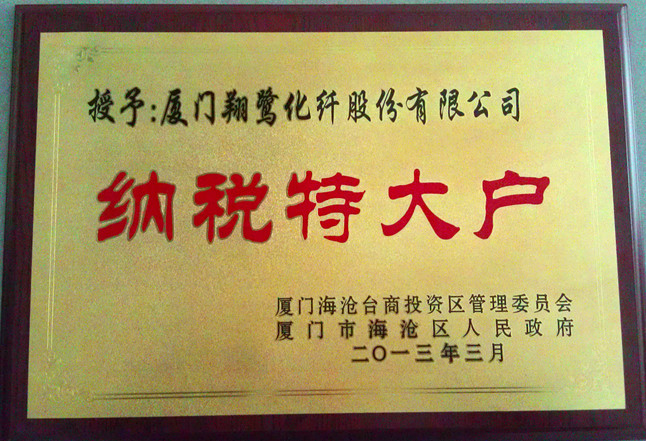 祝賀翔鷺化纖榮獲“高新技術(shù)企業(yè)”“納稅特大戶”稱號根據(jù)《高新技術(shù)企業(yè)認(rèn)定管理辦法》和《高新技術(shù)企業(yè)認(rèn)定管理工作指引》有關(guān)規(guī)定及全國高新技術(shù)企業(yè)認(rèn)定管理工作領(lǐng)導(dǎo)小組辦公室《關(guān)于廈門市2012年第二批高新技術(shù)企業(yè)復(fù)審備案申請的復(fù)函》現(xiàn)確認(rèn)廈門翔鷺化纖股份有限公司為高新技術(shù)企業(yè),頒發(fā)“高新技術(shù)企業(yè)證書”授予“高新技術(shù)企業(yè)”稱號。