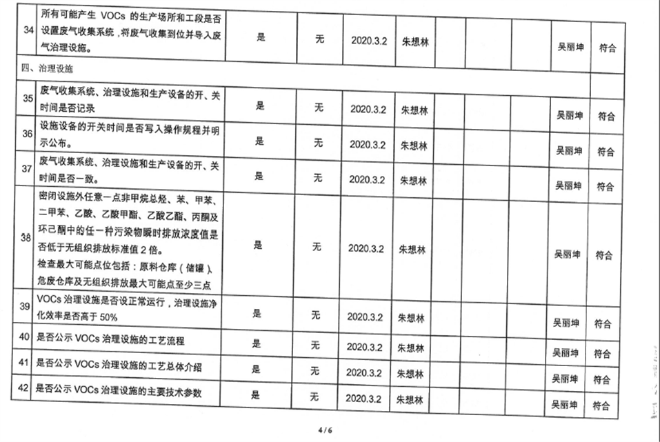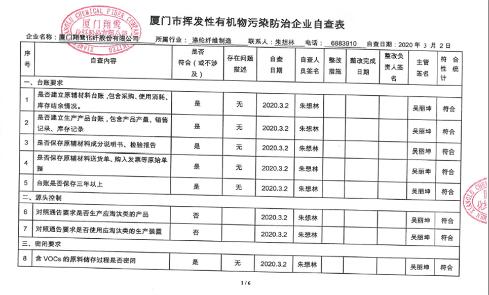 廈門市揮發(fā)性有機物污染防治企業(yè)自查表(2020年第一季度)