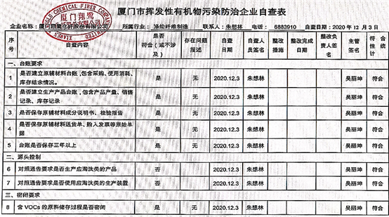 翔鷺化纖 廈門市揮發(fā)性有機(jī)物污染防治企業(yè)自查表 (2020年 第四季度).docx
